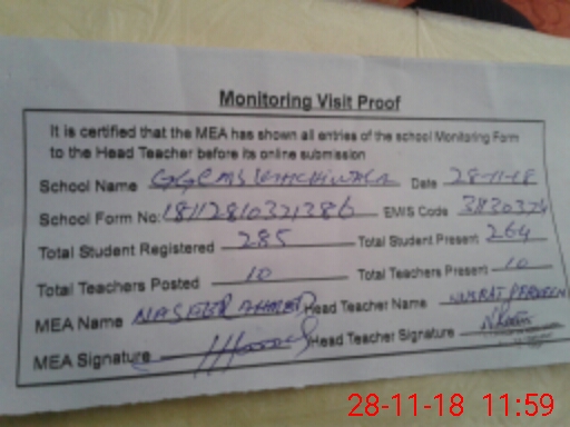 | EMIS Code: 31130374 | Name of School: GGCMS KHICHIWALA | |||