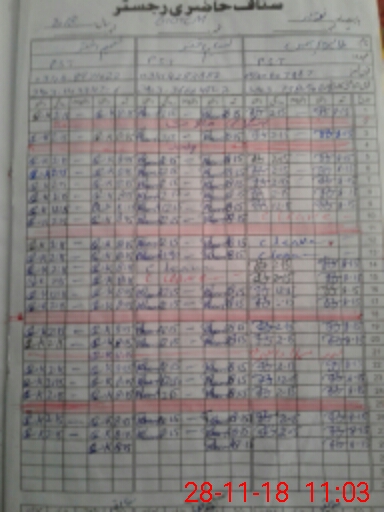 | CNIC | Full Name | Designation | R/C | Absence During Last Calender Month |