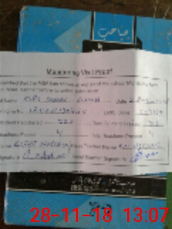 | Monitoring Date: 28-11-2018 | Start Time: 28-11-2018 12:55 PM | End Time: 28-11-2018 01:07 PM | Name of MEA: Al**** Hu**** BN**** | |