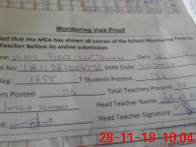 | Attendance Register | Head Teacher | MEA with School | Visit Proof |