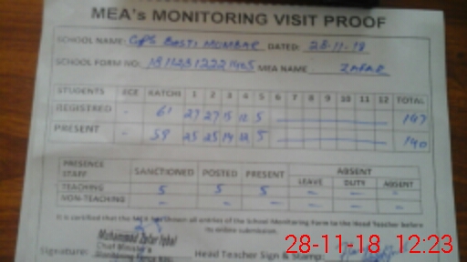 | Attendance Register | Head Teacher | MEA with School | Visit Proof |