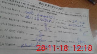 | Monitoring Date: 28-11-2018 | Start Time: 28-11-2018 11:54 AM | End Time: 28-11-2018 12:19 PM | Name of MEA: Kh**** Ta**** | |