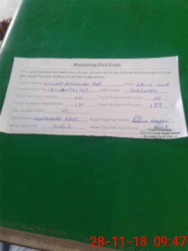 | Attendance Register | Head Teacher | MEA with School | Visit Proof |
