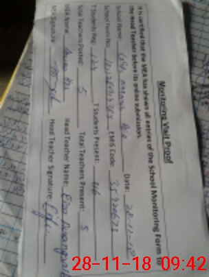 | Attendance Register | Head Teacher | MEA with School | Visit Proof |