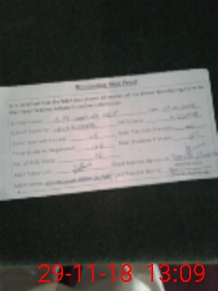 | Monitoring Date: 29-11-2018 | Start Time: 29-11-2018 12:55 PM | End Time: 29-11-2018 01:13 PM | Name of MEA: Mu**** Ak**** | |
