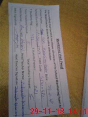 | Attendance Register | Head Teacher | MEA with School | Visit Proof |