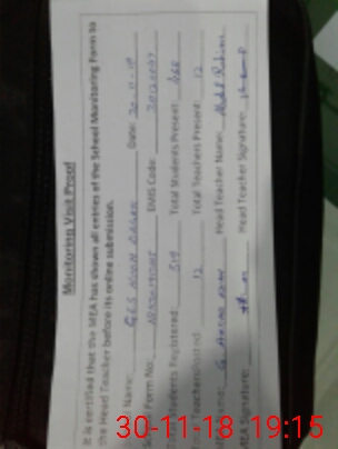 | Monitoring Date: 30-11-2018 | Start Time: 30-11-2018 06:57 PM | End Time: 30-11-2018 07:16 PM | Name of MEA: Gh**** Ak**** Kh**** | |