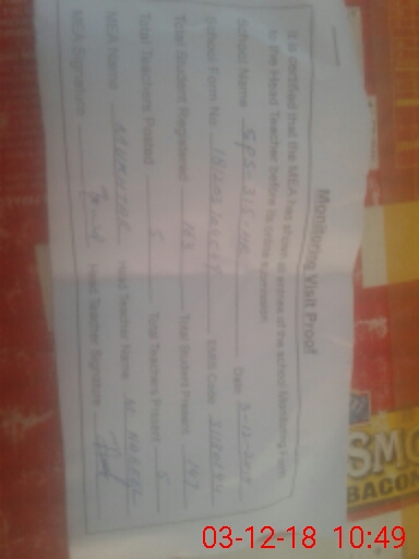 | Certified that this School was Inspected by the Undersigned MEA/DMO Today and the Information Stated Above is as Per Record. | |||||