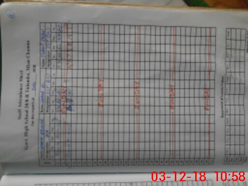 | Remarks (Use Separate Page if Required): SOHAIL IQBAL SST SC FOUND ABSENT FROM DUTY THERE IS NO LEAVE APPLICATION LEAVE ACCOUNTS DIARY REGISTER ENTRY LAST DIARY SNO 146 DATED 01 DECEMBER 2018 ATTENDANCE REGISTER COLUMN WAS LEFT BLANK HAMZA WARIS LA ALSO FOUND ABSENT FROM DUTY BOGUS ATTENDANCE ON ATTENDANCE REGISTER STAFF PHYSICALLY NOT PRESENT IN THE SCHOOL ON PHYSICALLY CHECKING NO ORDER BOOK ENTRY LAST ORDER BOOK SNO 120 DATED 08 NOVEMBER 2018 | |||||