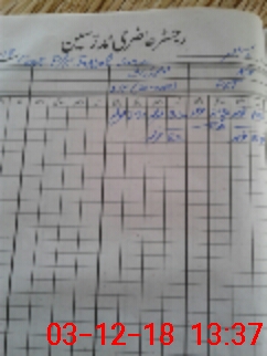 | CNIC | Full Name | Designation | R/C | Absence During Last Calender Month |
