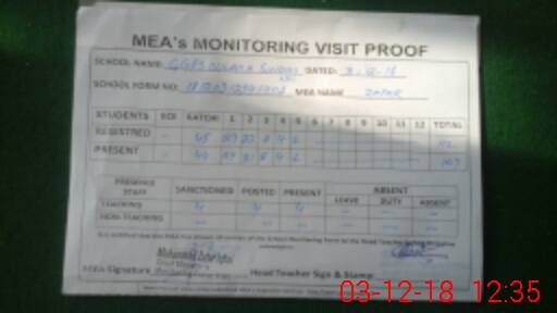 | Certified that this School was Inspected by the Undersigned MEA/DMO Today and the Information Stated Above is as Per Record. | |||||