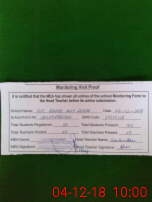 | Attendance Register | Head Teacher | MEA with School | Visit Proof |