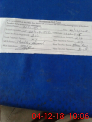 | Attendance Register | Head Teacher | MEA with School | Visit Proof |