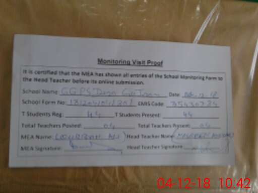 | EMIS Code: 35430784 | Name of School: GGPS DERA GUJRAN LALKAY | |||