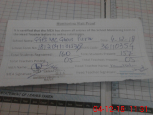 | EMIS Code: 36110354 | Name of School: GGPS MC GHOUS PURA | |||