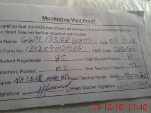| Certified that this School was Inspected by the Undersigned MEA/DMO Today and the Information Stated Above is as Per Record. | |||||
