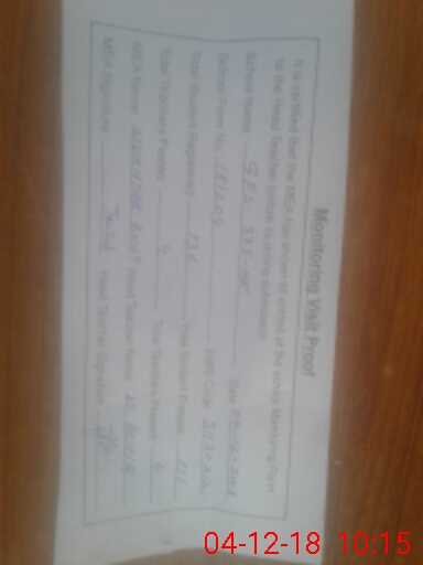 | Attendance Register | Head Teacher | MEA with School | Visit Proof |