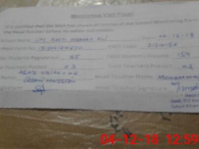 | EMIS Code: 31310156 | Name of School: GPS BASTI HIDAYAT ALI | |||