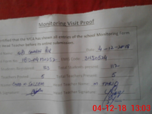 | EMIS Code: 31150524 | Name of School: GPS SHARAF PUR | |||