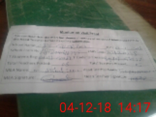 | Attendance Register | Head Teacher | MEA with School | Visit Proof |