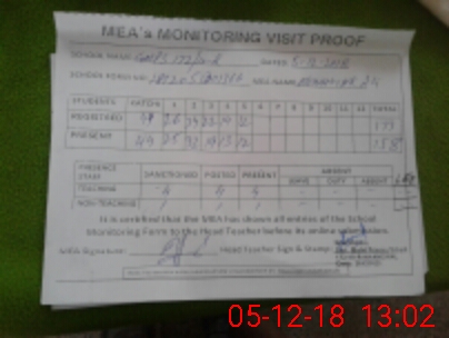 | Attendance Register | Head Teacher | MEA with School | Visit Proof |