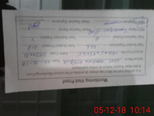 | Total no. of Classrooms: 4 No. of Classrooms Used for Teaching: 4 No. of Classrooms Storing Old Furniture, FTBs, etc: 0Comments if Any: S H N S SHAHID NAWAZ LAST VISIT THE SCHOOL MARCH 2016 AFTER NO VISIT OF THIS SCHOOL TILL TO DATE N S B CASH BOOK RECORD KEPT HEAD MISTRESS AT HOME |