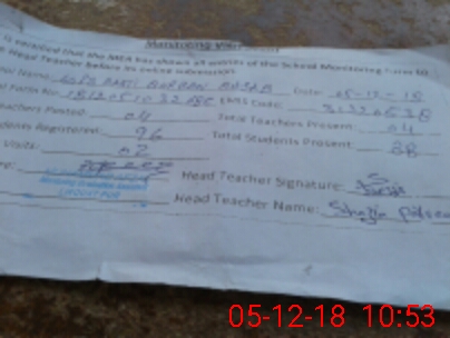 | Attendance Register | Head Teacher | MEA with School | Visit Proof |