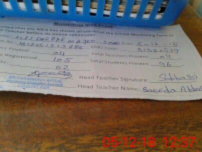 | Attendance Register | Head Teacher | MEA with School | Visit Proof |