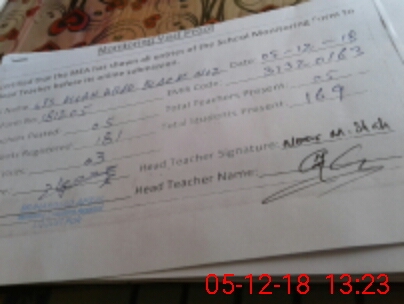| Attendance Register | Head Teacher | MEA with School | Visit Proof |