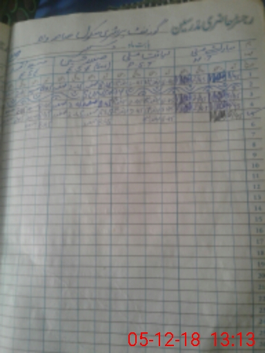 | CNIC | Full Name | Designation | R/C | Absence During Last Calender Month |