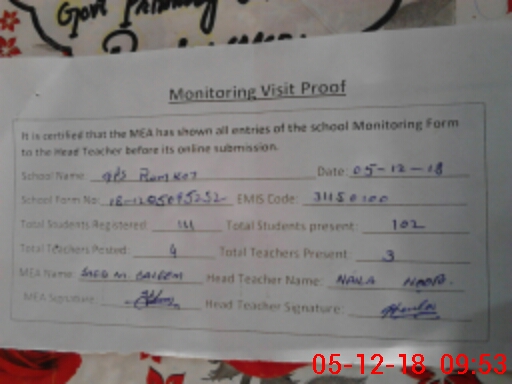 | EMIS Code: 31150100 | Name of School: GPS RAMKOT | |||