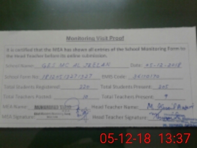 | Attendance Register | Head Teacher | MEA with School | Visit Proof |