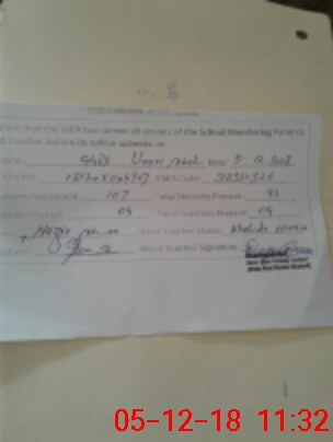 | Attendance Register | Head Teacher | MEA with School | Visit Proof |