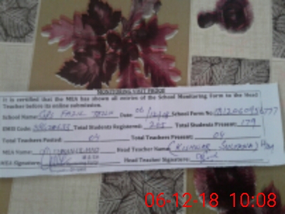 | Attendance Register | Head Teacher | MEA with School | Visit Proof |