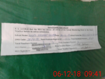 | Attendance Register | Head Teacher | MEA with School | Visit Proof |