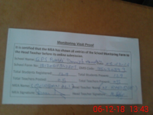 | EMIS Code: 35430393 | Name of School: GPS BASTI DANISH MANDAN | |||