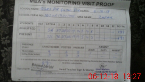 | Attendance Register | Head Teacher | MEA with School | Visit Proof |