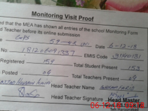 | EMIS Code: 31140131 | Name of School: GPS CHAK NO 59/4-R W | |||