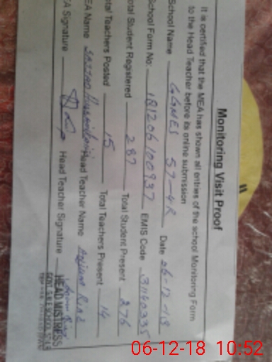 | Certified that this School was Inspected by the Undersigned MEA/DMO Today and the Information Stated Above is as Per Record. | |||||