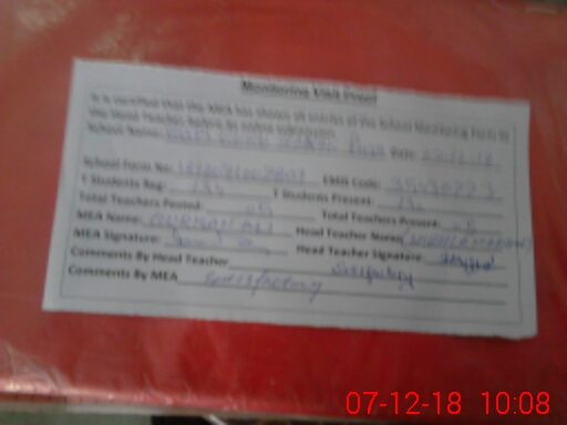 | Attendance Register | Head Teacher | MEA with School | Visit Proof |