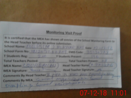 | Attendance Register | Head Teacher | MEA with School | Visit Proof |