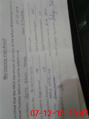 | Certified that this School was Inspected by the Undersigned MEA/DMO Today and the Information Stated Above is as Per Record. | |||||