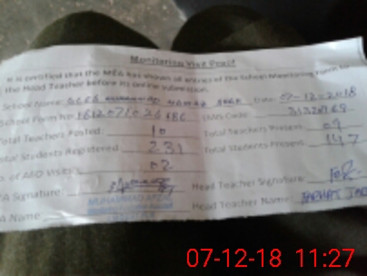 | Attendance Register | Head Teacher | MEA with School | Visit Proof |