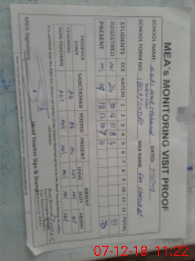 | Monitoring Date: 07-12-2018 | Start Time: 07-12-2018 10:46 AM | End Time: 07-12-2018 11:22 AM | Name of MEA: Ra**** Sh**** Al**** ex**** | |