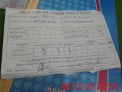 | Attendance Register | Head Teacher | MEA with School | Visit Proof |