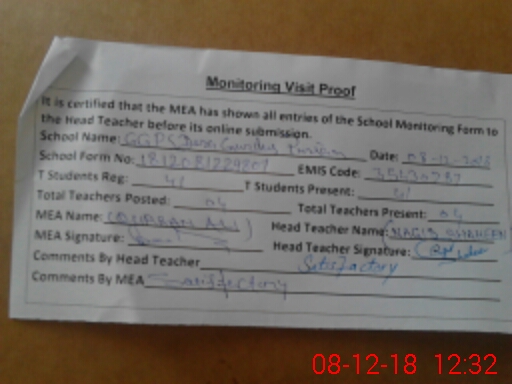 | Attendance Register | Head Teacher | MEA with School | Visit Proof |