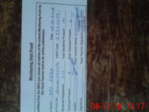 | Attendance Register | Head Teacher | MEA with School | Visit Proof |