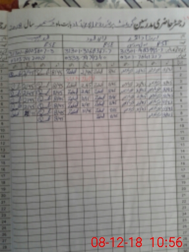 | Name: IR**** AH**** Designation: (School Headmaster's/Headmistress's) PST Phone/Cell Number: 03**** |