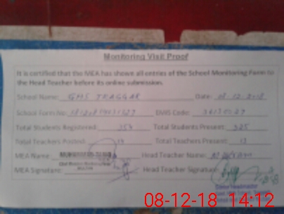 | EMIS Code: 36130027 | Name of School: GHS TRAGGAR MULTAN | |||