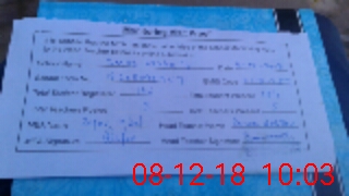| Monitoring Date: 08-12-2018 | Start Time: 08-12-2018 09:45 AM | End Time: 08-12-2018 10:03 AM | Name of MEA: Za**** Iq**** BN**** | |